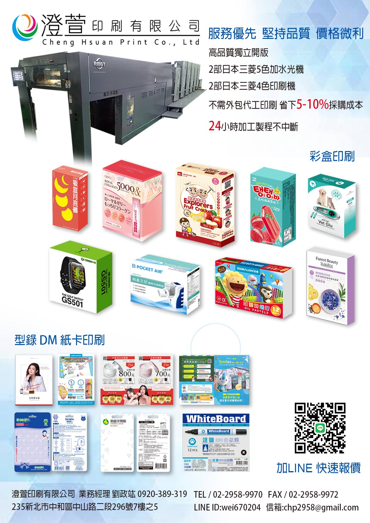 歡迎來信提供印刷條件,也可加入本公司 LINE,我們會有專人立即為您提供報價服務。